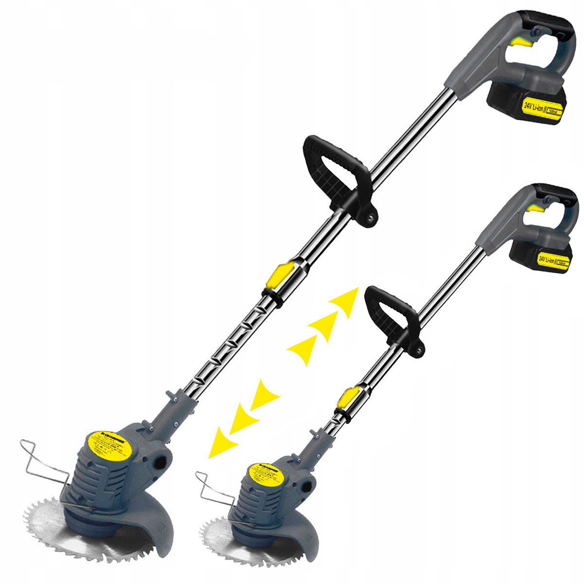 Инструмент состоит из силового агрегата и штанги с режущим инструментом, защищённой кожухом. Используя ремень, оператор держит газонокосилку в руках, направляя режущий механизм в нужную зону.