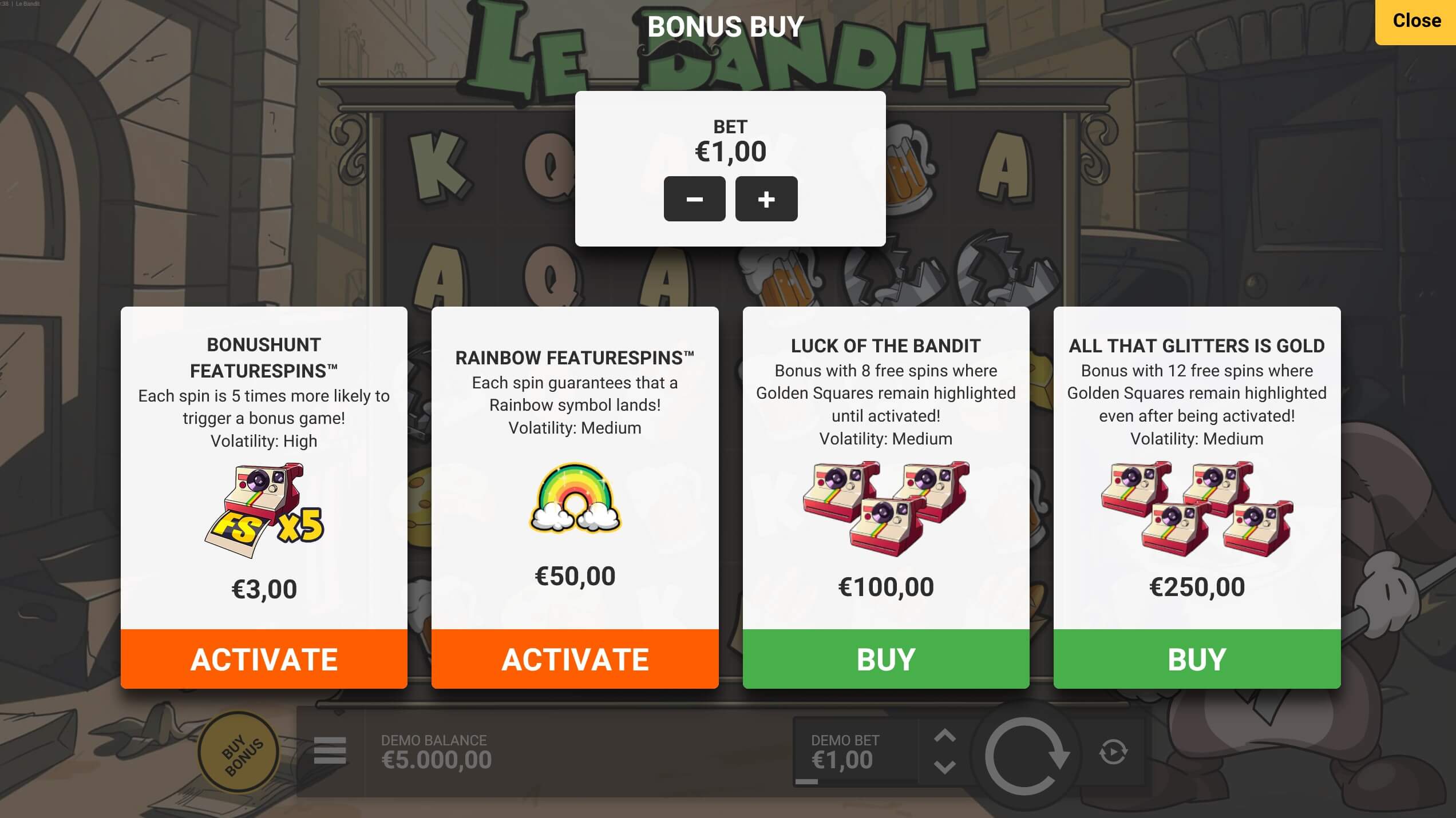 ‘Le Bandit’ is a slot game from Hacksaw Gaming. Based upon the variety of gamers searching for this game, ‘Le Bandit’ is one of the most prominent slots online. Try it free of cost to find out why this Slot is so popular.